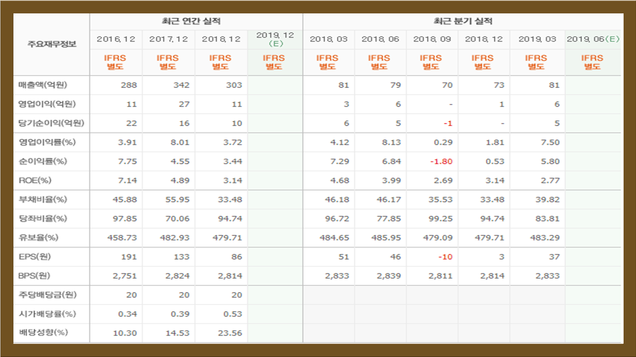 이글벳의 재무정보입니다. 전년도 기준 매출액은 303억 원, 영업이익은 11억 원, 당기순이익은 10억 원을 기록하였습니다. 유보율 479.71% 대비 부채비율 33.48%로 재무안정성은 좋은 편이니 투자에 참고하시면 좋겠습니다.
