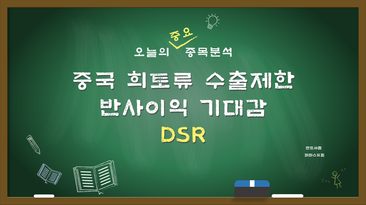 안녕하세요, 파파스드림입니다. 오늘은 중국 희토류 수출 제한으로 반사이익을 얻을 것이라는 기대감으로 상승한 DSR의 주가 전망에 대해 이야기해보도록 하겠습니다.