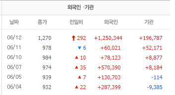 오늘만 외국인이 125만 주 이상을 매수하였는데요. 어떤 호재가 있어 이렇게 줄기차게 매수하고 있는지는 한번 지켜봐야겠습니다.