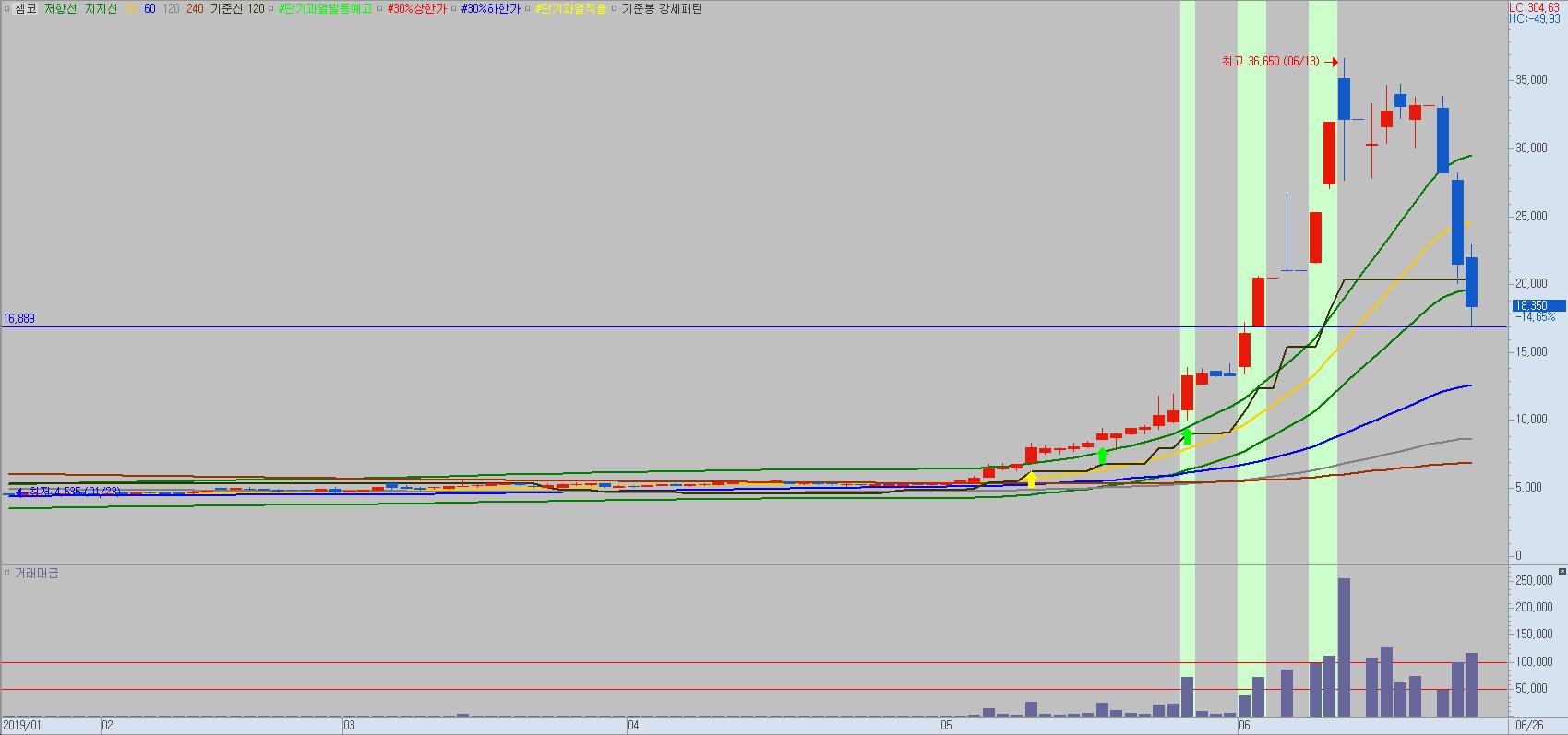 또한 샘코 역시 내일 오늘 밑꼬리 저점을 지지한다면 3음봉 이후 큰 반등이 나올 수 있는 자리입니다. 급등했던 종목이 급락성으로 3음봉이 나오면 어떻게 반등이 나오는지도 한번 지켜보세요.