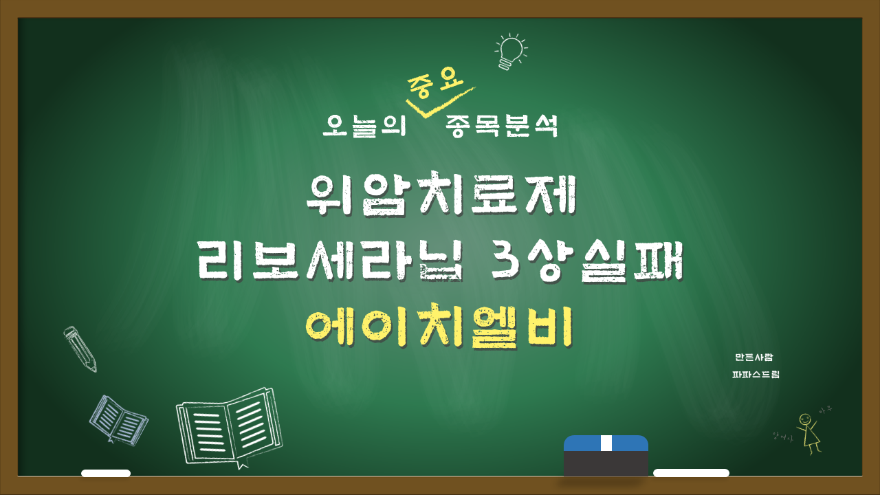 안녕하세요, 파파스드림입니다. 오늘은 위암치료제 '리보세라닙' 3상실패 소식으로 하한가를 기록한 에이치에비의 주가 전망에 대해 이야기 해보도록 하겠습니다.