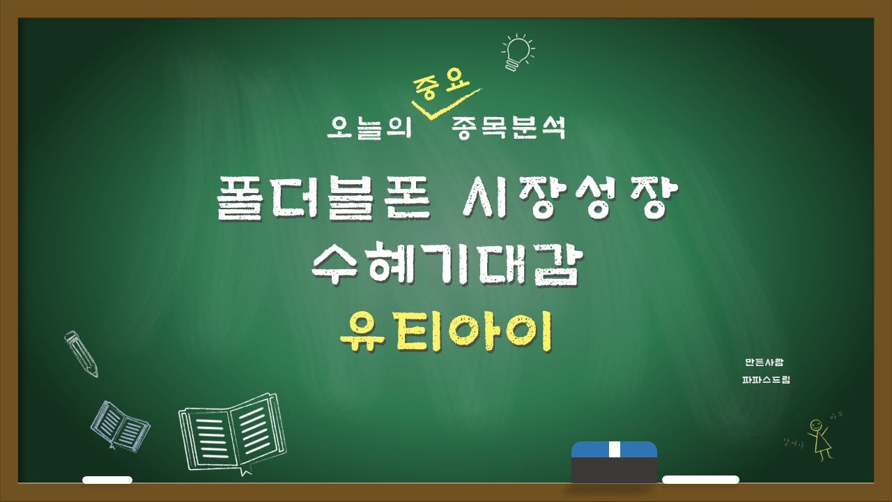 안녕하세요, 파파스드림입니다. 오늘은 폴드블폰 시장성장에 따른 수혜를 받을 것이라는 기대감으로 급등한 유티아이의 주가 전망에 대해 이야기해보도록 하겠습니다.