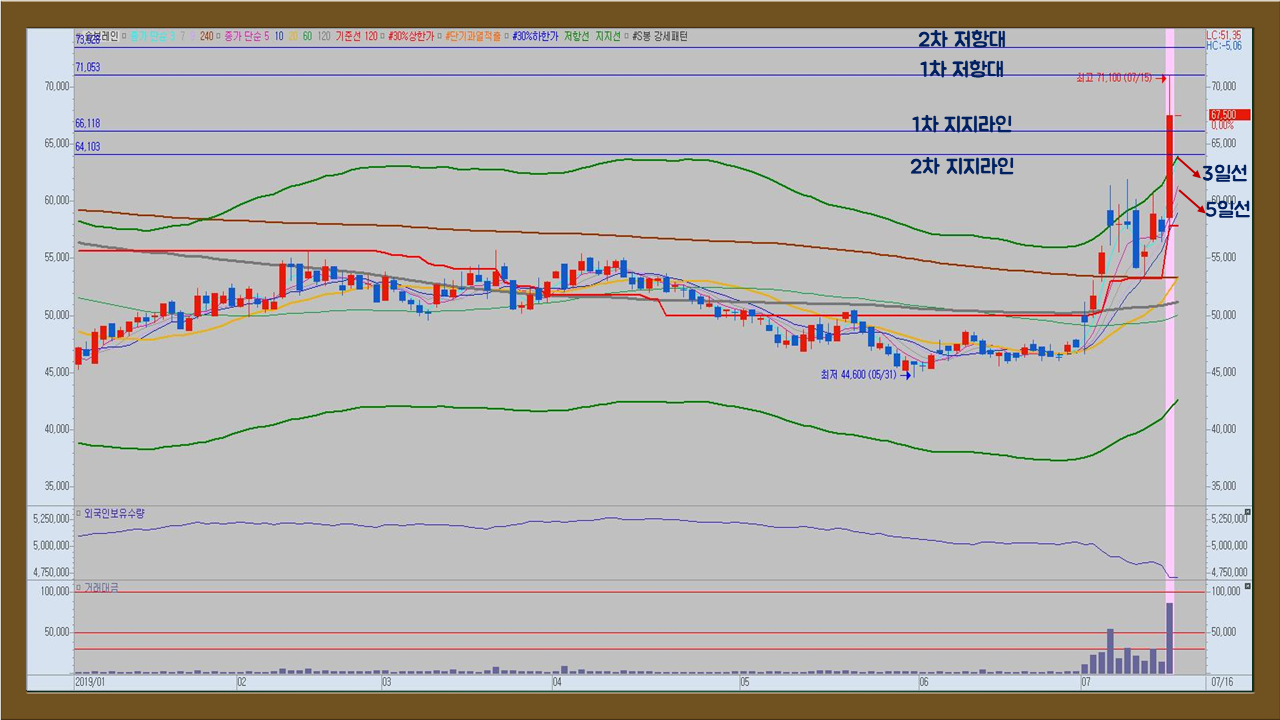 그래서 모나미 종목을 분석했을 때도 이번에는 이삼일 반짝 급등하고 조정 후 재차 상승할 것이라는 생각을 했었는데요. 제 예상과는 다르게 일본의 우리나라 수출규제가 장기화될 조짐이 보이면서 관련 종목들이 추가 상승할 가능성이 높아졌습니다.