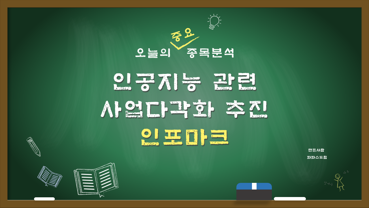 안녕하세요, 파파스드림입니다. 오늘은 인공지능 관련 사업다각화 추진 소식으로 상한가를 기록한 인포마크의 주가 전망에 대해 이야기해보도록 하겠습니다.