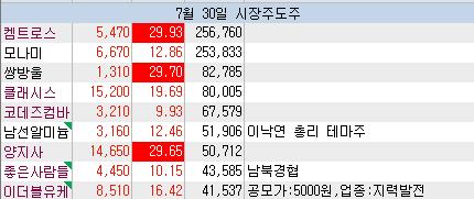위의 사진은 제가 매일 시장주도주를 정리해놓은 것인데요. 매일 시장주도주가 나오고 있습니다. 이 말은 주식시장은 하락하고 있지만 매일매일 급등하는 종목들이 있다는 것이지요. 오늘만해도 양지사부터 쌍방울, 켐트로스 등이 상한가를 기록했습니다. 하락장이든 상승장이든 주도주를 찾아 매매하는 습관을 만든다면 좋은 성과가 있을 거라 생각합니다.