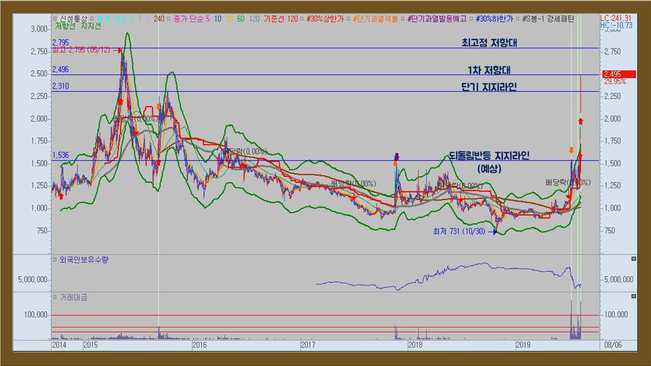 제 시나리오는 이렇습니다. 최근 급등한 일본 수출규제 테마주들이 하락하는 시점에 코스닥 및 코스피는 반등이 나올 것이고, 그 동안 일본 수출규제 테마로 상승했던 종목들에 대해서 매도물량이 출회 될 것이다, 일본 불매운동, 수출규제 테마에 몰려있던 주식시장의 자금이 과대낙폭한 시장의 대장주들로 몰려 들면서 주가는 반등을 할 것이라 생각합니다.