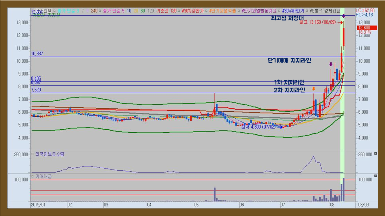 일본의 화이트리스트 한국 배제, 일본 반도체 소재 수출규제등의 반사이익 기대감으로 주가가 급등하는 중에 지난 7월 20일 바젠과의 최대주주 변경을 수반하는 주식양수도 계약을 체결한 이슈로 꾸준히 상승 해 왔습니다.