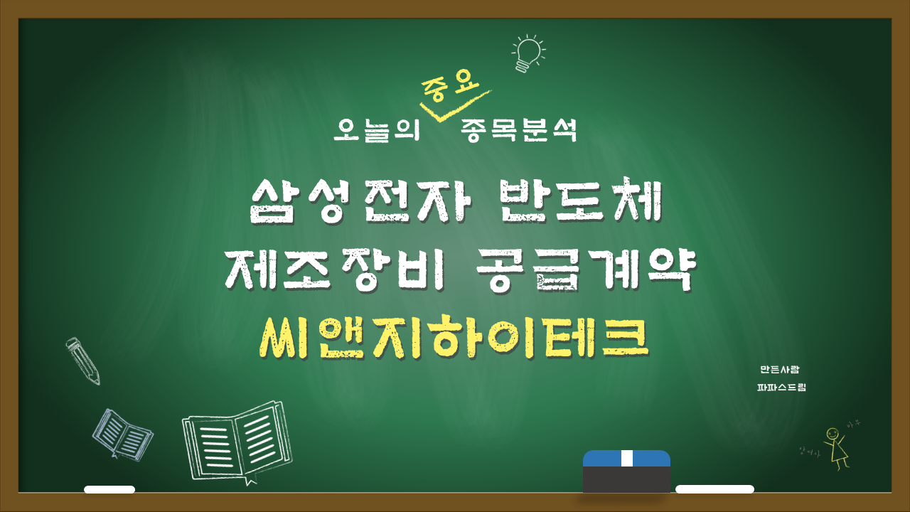 안녕하세요, 파파스드림입니다. 오늘은 삼성전자와 반도체 제조장비 공급계약을 체결한 씨앤지하이테크 주가 전망에 대해 이야기 해보도록 하겠습니다.