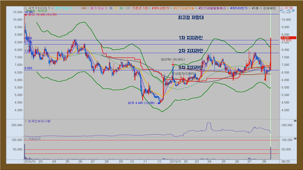 본 포스팅은 파파스드림이 씨앤지하이테크 종목을 매매하기 위한 시나리오를 작성한 것입니다. 파파스드림은 어떠한 경우에도 타인의 주식투자에 대한 책임을 지지 않습니다. 주식거래의 책임은 온전히 거래당사자에게 있음을 인지하시어 투자에 신중을 기해주세요.