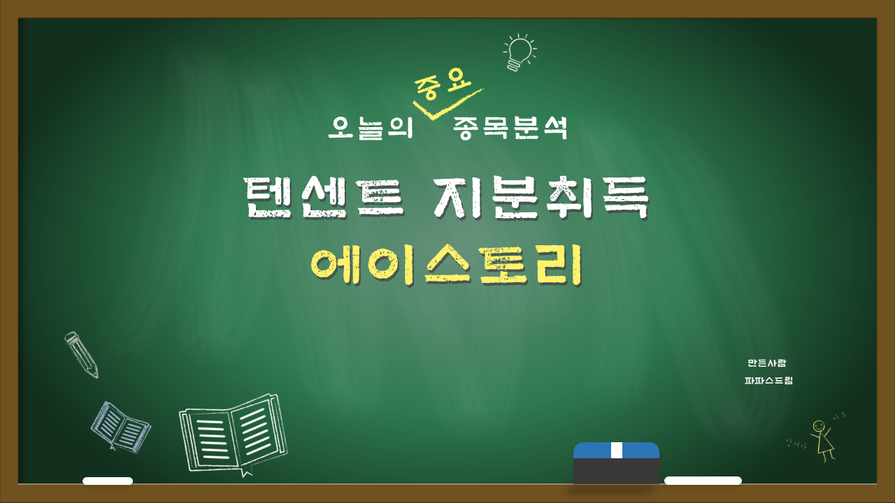 안녕하세요, 파파스드림입니다. 오늘은 텐센트 지분 취득한 소식으로 급등했다 하락한 에이스토리의 주가 전망에 대해 이야기 해보도록 하겠습니다.