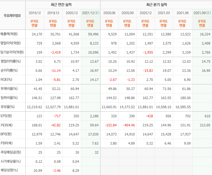 작년에 비해 영업이익률이 크게 늘어났다는 것은 긍정적이나 PBR이 높다는 것은 부정적인 요인으로 작용할 가능성이 있으니 투자에 참고하시길 바랍니다.