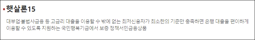 서민금융진흥원 햇살론15 개요안내