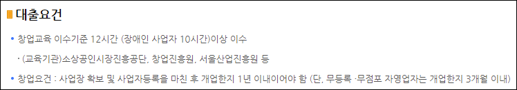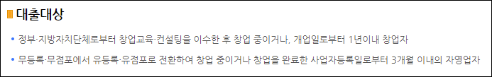 위의 대출대상에 해당한다고 하여도 창업교육을 이수하지 않은 상태라면 대출 신청대상에서 제외될 수 있으니 유의바랍니다.