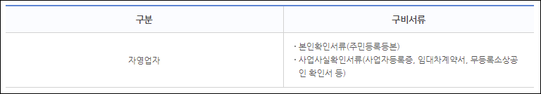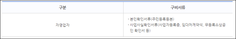 무등록 무점포에서 유등록 유점포로 전환하여 창업중이거나 창업을 완료한 사업자등록일로부터 3개월이내로 경과한 자영업자가 신청할 수 있습니다.