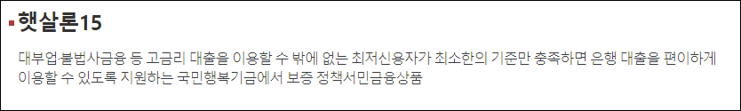 신용회복중 대출 가능한 곳 : 서민금융진흥원 햇살론15