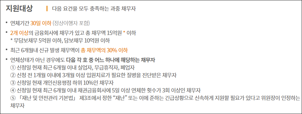 사전채무조정 지원대상