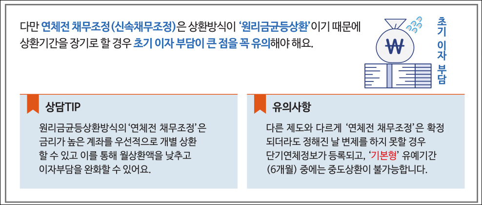 연체전 채무조정제도는 사전채무조정제도라고도 하며, 연체기간이 짧은 경우 또는 연체전에 신청할 수 있는 채무조정제도입니다.