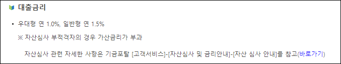 대출금리는 우대형의 경우 연 1.0%, 일반형의 경우에는 연 1.5%의 금리가 적용됩니다.