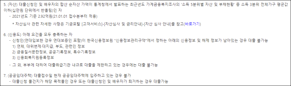 다만 주거급여 수급자의 경우 대출한도에서 주거급여 수급액만큼 제외하고 대출가능금액이 산정됩니다.