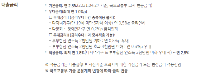 우대금리를 적용받지 못하는 경우 연 2.8%의 금리가 적용되며 우대금리는 신청인의 대출조건 등에 따라 다르게 적용됩니다.