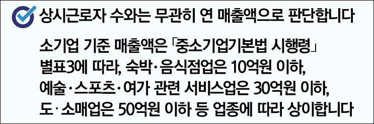 소상공인 손실보상 소기업 기준은 상시근로자 수와는 무관하게 연 매출액으로 판단합니다.