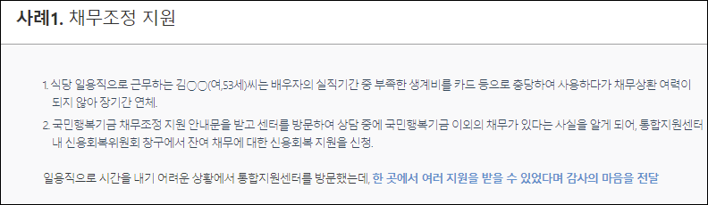 아래는 서민금융 통합지원센터를 이용하신 분들의 이용사례입니다.