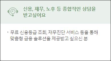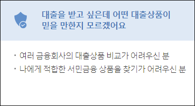 긴급자금이 필요해서 대출을 받고 싶은데 어떤 대출상품을 이용해야하는지 결정하기 어려울 때, 자금이 필요하지만 소득과 신용이 낮아 더이상 대출이 불가능할 때 이용할 수 있습니다.