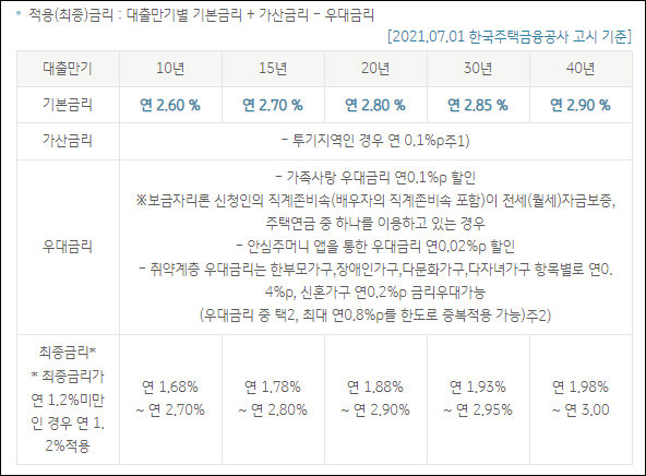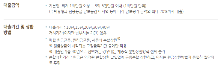 다만 상환기간을 40년으로 약정하기 위해서는 만39세 이하 청년가구 또는 혼인신고일로부터 7년미만인 신혼부부만 가능하니 유의바랍니다.