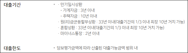 주택을 담보로 가계자금 및 주택구입자금을 필요로 하는 직장인 및 개인사업자가 대출 신청대상이 됩니다.