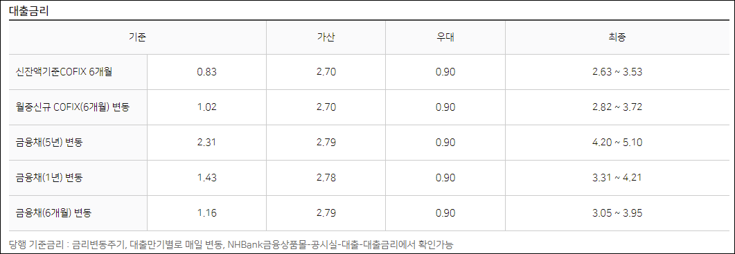 농협은행 주택담보대출 금리안내