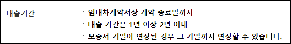 즉 임대차 계약서상 계약종료 잔여일이 1년 미만인 경우 우리은행 전세자금대출을 이용할 수 없으며, 보증서 기일이 연장된 경우(임대차 계약 연장시) 그 기일까지 대출기간을 연장할 수 있으니 이용에 참고바랍니다.