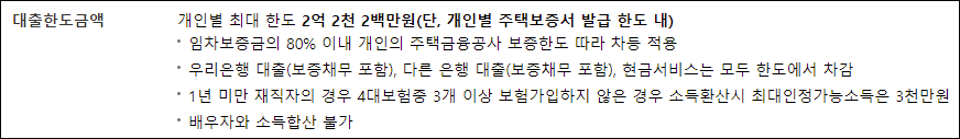 또한 대출금액은 임차보증금의 80%를 넘을 수 없으며, 보유하고 있는 신용채무 및 현금서비스 등이 있다면 한도에서 차감하고 실제한도가 결정됩니다.