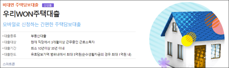 우리은행 주택담보대출은 모바일로 신청하는 간편한 주택담보대출입니다.