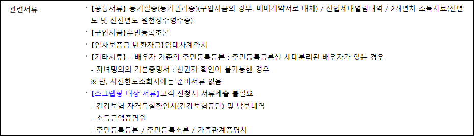 건강보험자격득실확인서 및 소득금액증명원은 스크래핑 방식으로 자동제출되니 별도의 서류구비가 불필요하며, 만약 스크래핑 방식으로 위의 서류가 확인이 되지않을 경우 대출신청이 제한될 수 있습니다.