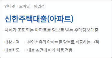 신한은행 아파트 담보대출 조건안내