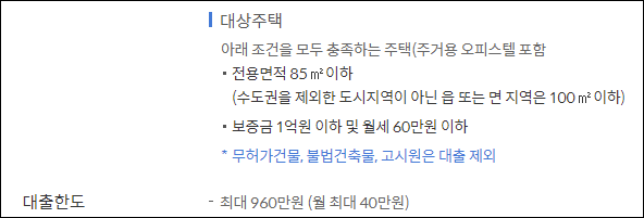 다만 무허가 건물 및 불법건축물, 고시원 등은 대출에세 제외되니 유의바랍니다.