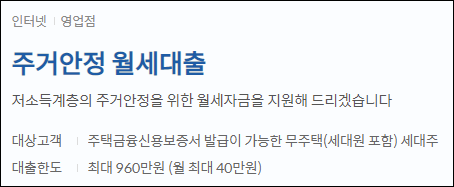 주거안정 월세대출은 저소득 계층의 주거안정을 위해 월세자금을 저금리로 지원하는 서민대출 상품입니다.