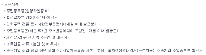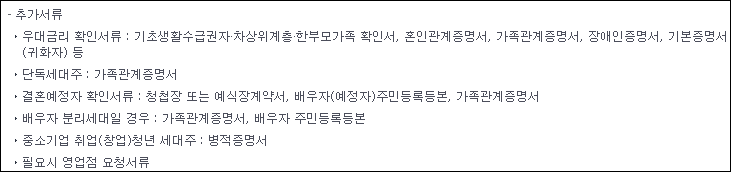 버팀목 전세자금대출 일반형이 아닌 신혼가구 및 2자녀 가구 등 한도와 금리를 우대받는 경우 관련 서류를 추가로 제출하여야 하니 참고바랍니다.