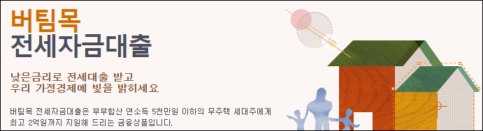 버팀목 전세자금대출은 무주택 세대주에게 낮은 금리로 주택 전세자금을 지원하는 정부지원 서민 전세자금대출 상품입니다.