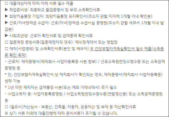 우대형 신청자는 위의 서류를 별도로 준비하셔야 하니 참고하시길 바랍니다.