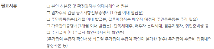 주거안정 월세대출 신청시 필요서류는 다음과 같습니다.