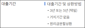 대출기간은 3년 또는 5년 중 하나를 신청인이 선택할 수 있으며, 이자만 납입하는 거치기간은 별도루 운용할 수 없습니다.