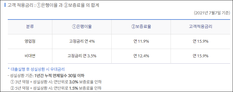 따라서 신용등급이나 상환여력이 좋은 분이 햇살론15를 이용하게 되면 비교적 높은 금리의 대출상품을 이용하는 상황이 발생할 수 있으니 본인의 신용등급에 맞는 대출상품을 이용하시길 바랍니다.