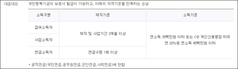 - 연소득 3500만원 이하 또는 개인신용평점 하위 20%이면서 연소득이 4500만원 이하인 분