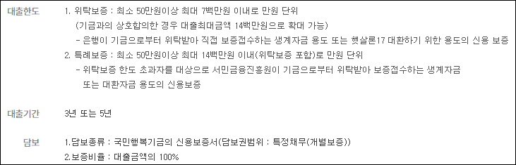 특례보증을 신청하면 한도가 1400만원까지 증액되는데 모든 분들이 특례보증 승인을 받을 수 있는 것은 아니고 특례보증이 필요한 이유, 자금용도 등을 소명해야만 승인이 가능합니다.