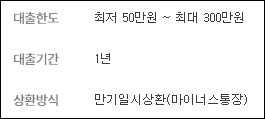 소득과 재직유무와 관계없이 신청할 수 있지만 현재 연체중이거나, 신용등급이 낮거나, 기존 부채잔액이 과다한 경우에는 대출 신청이 제한될 수 있으니 유의바랍니다.