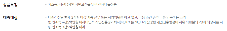 - 개인신용평점 하위 20%이면서 연소득 4500만원 이하