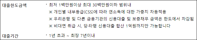 또한 우리은행 및 다른 금융기관의 신용대출 및 보증채무 금액은 한도에서 차감되니 이용에 참고바랍니다.