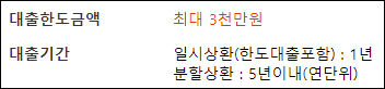 분할상환의 경우 5년 이내에서 신청인이 1년단위로 대출기간을 선택할 수 있지만 대출 실행 이후에는 대출상환기간을 변경할 수 없으니 신중히 결정하시길 바랍니다.
