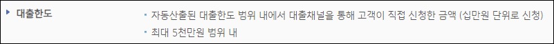 신청인의 개인신용점수 및 상환여력, 연간소득 등을 고려하여 자동 산출된 대출한도 범위내에서 신청인이 직접 10만원 단위로 입력하여 이용할 수 있습니다.